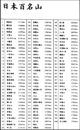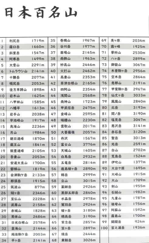 日本立体地図カレンダー用 日本百名山シール 白黒版