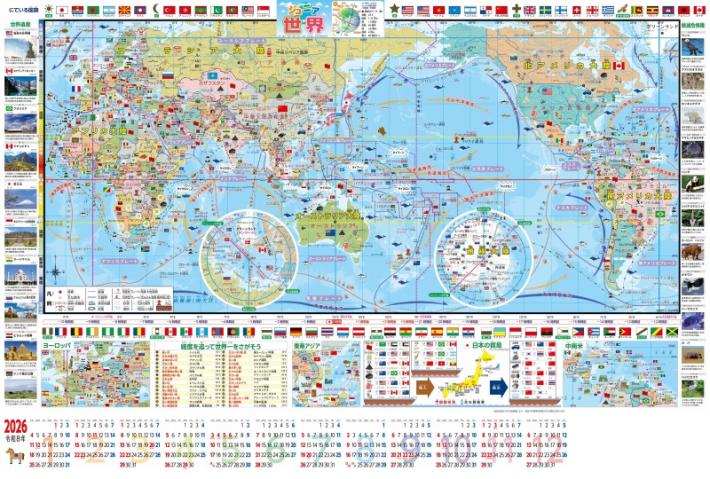 ポスタータイプのジュニア世界地図カレンダー!