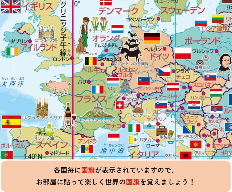 ご家族で楽しく遊び感覚で 「世界の中の日本」 を感じて下さい。子供部屋やリビングなどでご使用いただければと思います。またはトイレでも・・・