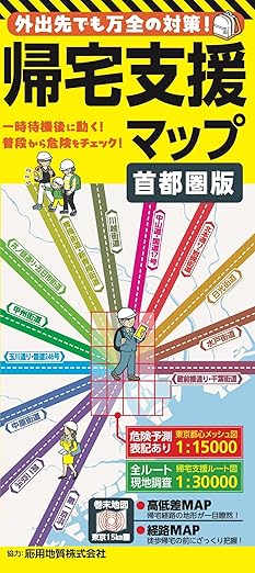 ■商品概要 【東京都心メッシュ図】1:15,000 ・山手線エリア+湾岸エリア 【帰宅支援ルート図】1:30,000 ・第一京浜・第二京浜 ・中原街道 ・玉川通り・国道246号 ・甲州街道 ・井ノ頭通り・五日市街道 ・青梅街道・新青梅街道 ・川越街道 ・中山道・国道17号 ・北本通り・岩槻街道 ・日光街道 ・水戸街道 ・蔵前橋通り・千葉街道 【東京15km圏経路MAP】1:80,000 【東京15km圏高低差MAP】1:80,000 |